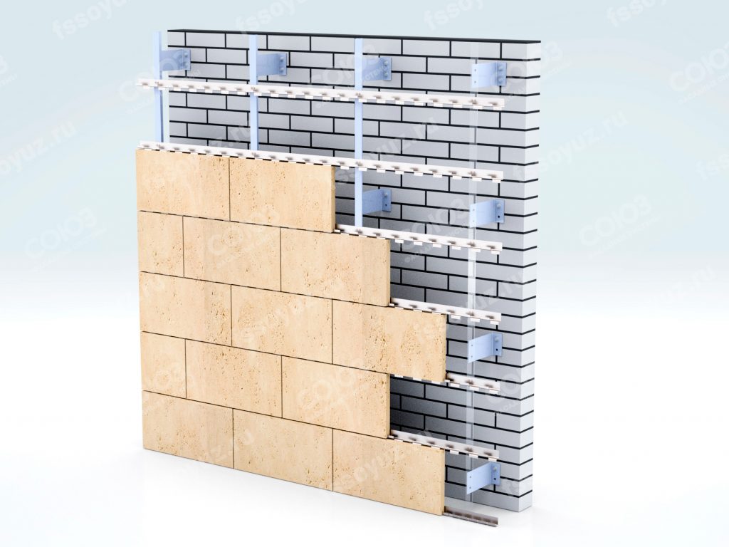 Монтаж вентилируемого фасада из натурального камня включает несколько этапов: